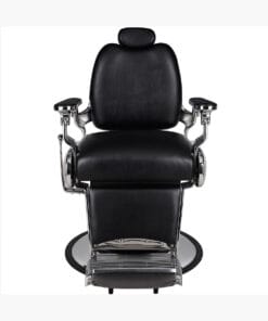 Large hydraulic comfy barbers chair which is ideal for barbershops and beauty spa’s. Large white hydraulic locking base as standard , reclining backrest with adjustable headrest. The backrest is also integrated with the leg rest position which also has a swivel upholstered footstool. Stylish chrome finish on the sides and front.