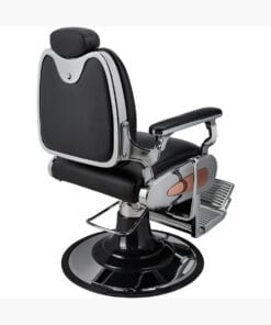Mila Tiger Standard Black Barbers Chair in black upholstery on white hydraulic base.