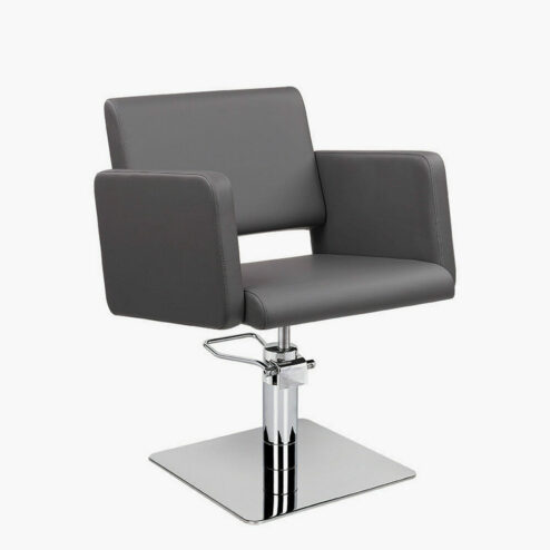 The Leaa chair comes complete with a large rear cut out for easy cleaning of cut hair and comes on a locking hydraulic pump, on a chrome 5 star base as standard, round and square locking hydraulic bases and the new Tulip shaped locking hydraulics are available on a square or round base for a small additional cost.