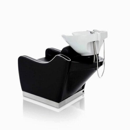 Modern salon wash unit with a simple yet stylish wave design. The Roma Washpoint features fully upholstered arm rests and a comfortable seat. Finished in a hard wearing black upholstery with white piping. Ideal for any busy professional salon or barbers shop. Giving both great support and an elegant design the Roma washpoint comes complete with a deep ceramic white basin, supplied on a tilting mechanism with mixer taps, hand spray and full waste kit included. Ready for your plumber to install.