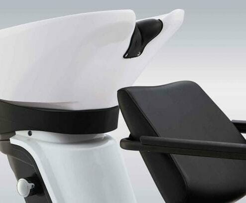 Takara Belmont RS Prime Washpoint, brilliant and compact rear shampoo unit with distinct and outstanding quality. The Takara Belmont RS Prime Washpoint is a luxury backwash, designed with style and comfort in mind. It has a large ceramic basin with an ergonomic tilt-mechanism, chrome tap, free-swivelling showerhead and retracting cord, thermostatic control, hair trap system and a gel-filled neck cushion for added client comfort, moulded fibreglass rear seat shell available in black or white.