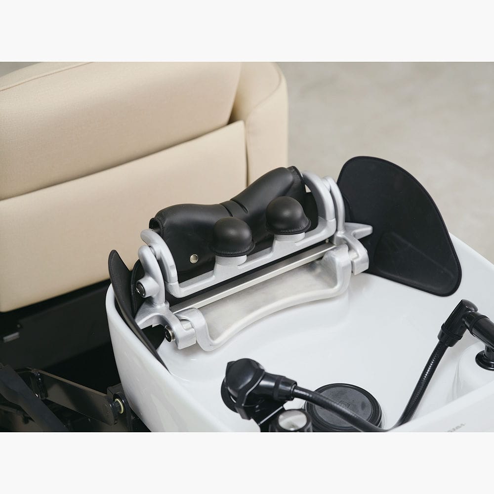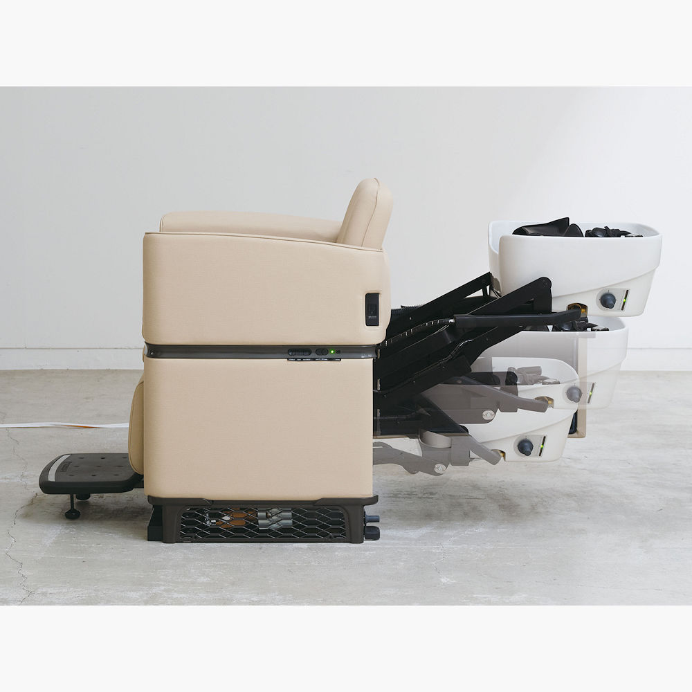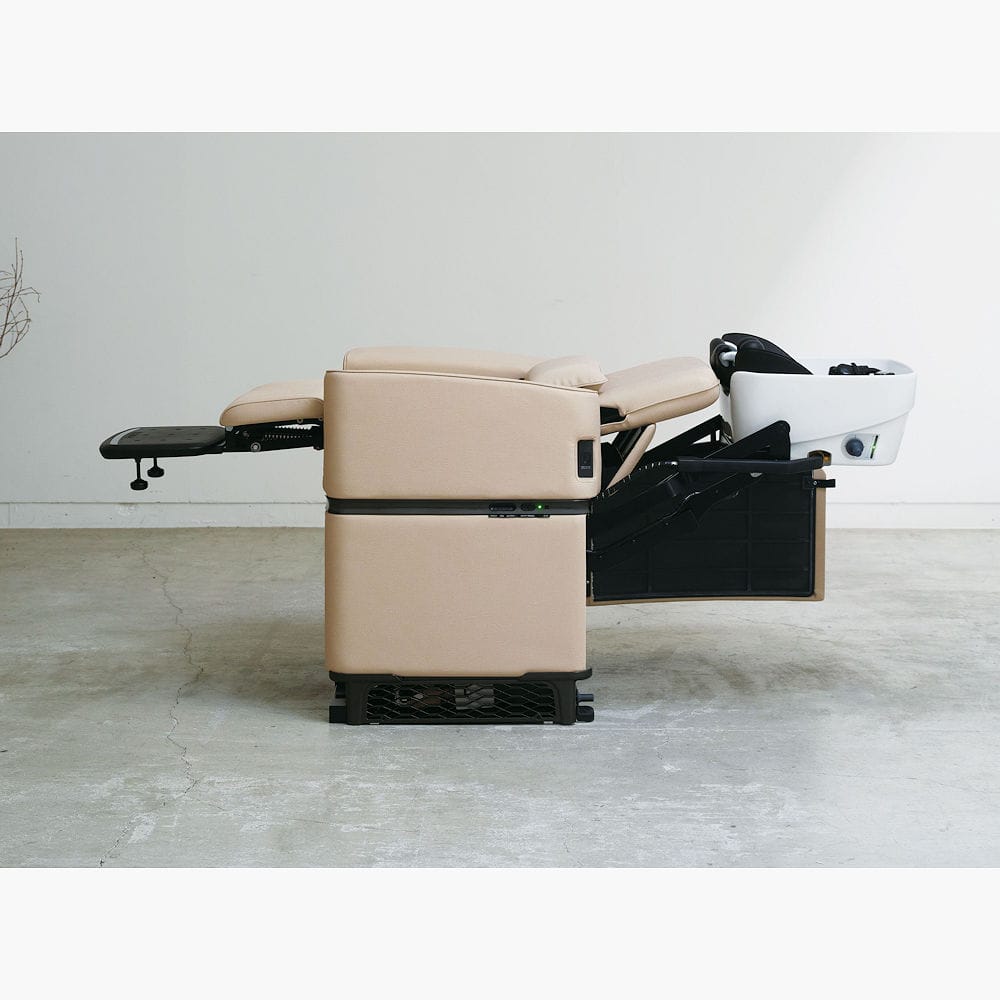 Takara Belmont The One Washpoint. A great new piece of salon furniture which is motorised to provide shampooing, cutting & styling all in one unit, enabling fixed-point service for your customers, from haircutting and shampooing to coloring, perming, plus head-SPA rituals without ever moving the client. Minimal design creates a flexible, stylish salon space. Integrated basin ensures smooth, uninterrupted workflow guaranteeing maximum customer satisfaction, turning every treatment into a moment of pure luxury with a comfortable hair washing position for your customer.