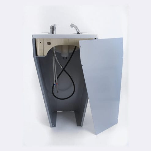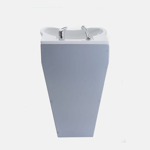 The WBX Lavaggio Front Wash Basin is a complete Front Wash Unit with a white porcelain basin, mixer taps, shower head and hose. The sleek styled base cabinet is made from powder coated galvanised steel with the option of a removable back for island fitting or no back for wall fitting. Also comes with a removable side panel for easy plumbing access. The cabinet is available in silver, white or black. Please use the drop down menu to select your colour. This unit is fully DDA compliant so you can be sure of a great build quality which will stand the” test of time”.