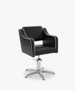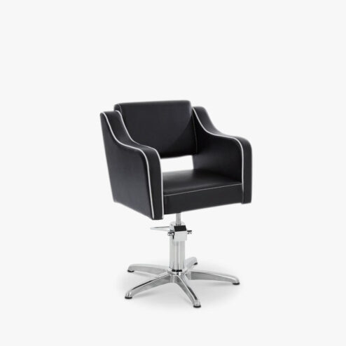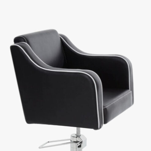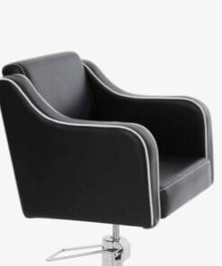 Simple design and modern looking salon chair with sleek wave lines. The Roma Hydraulic Styling Chair features a slight curve in the arms. Which has been specifically designed to give the best client comfort possible. The 5 star base comes complete with a locking hydraulic pump. This allows for an easy height adjustment using the foot lever. And also prevents the chair rotating while in use, the Roma 5 is upholstered in black hard wearing fabric with white contrast piping.