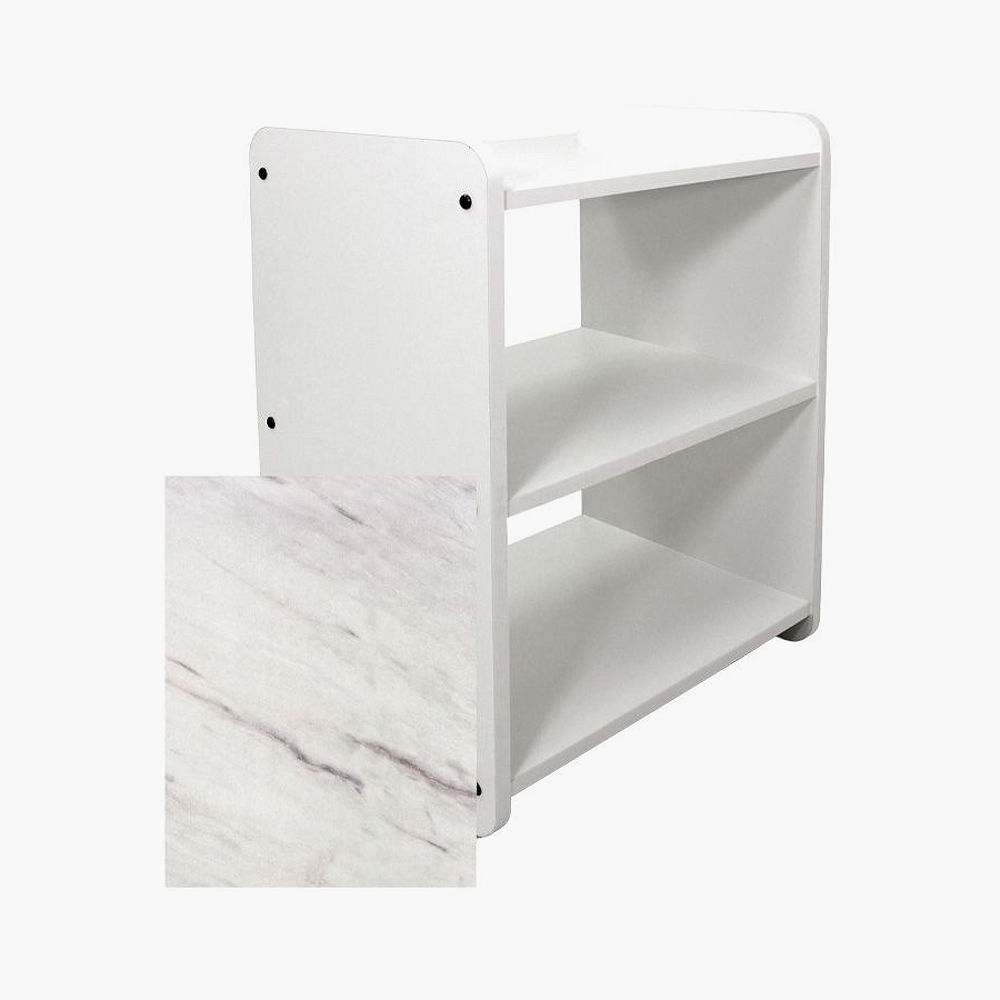 REM Spa Trolley in Levante Marble. The Spa trolley is designed to complement the Rem range of beauty spa couches and beauty furniture. Great spa trolley for beauty salons, spa’s or colleges, finished all over in the Rem Levante Marble laminate. Supplied with 3 fixed generous shelves for machine storage on castors for easy movement around your beauty salon or beauty spa.