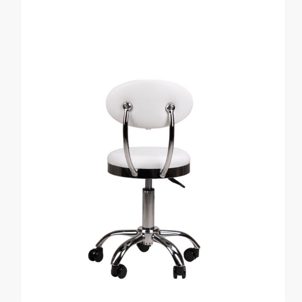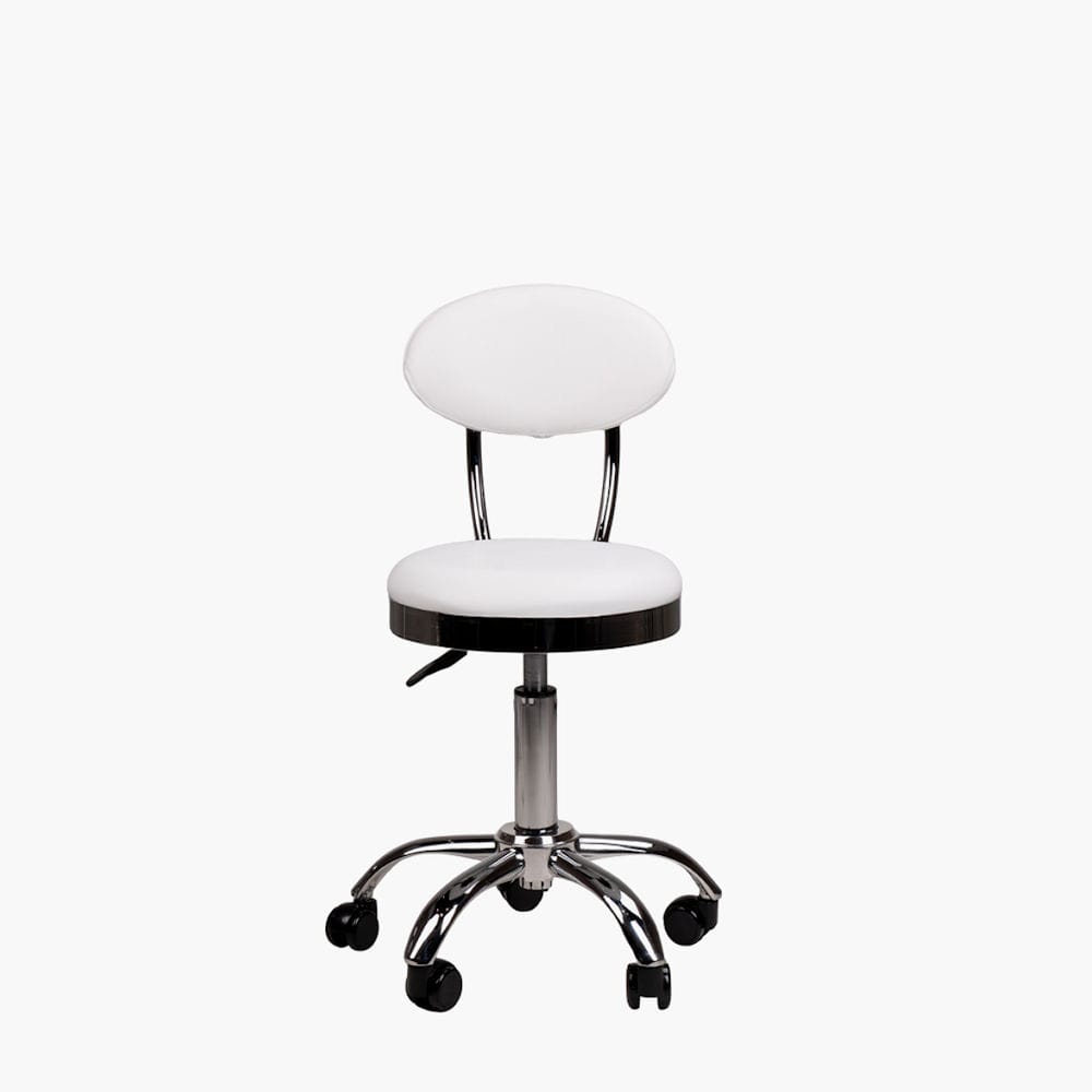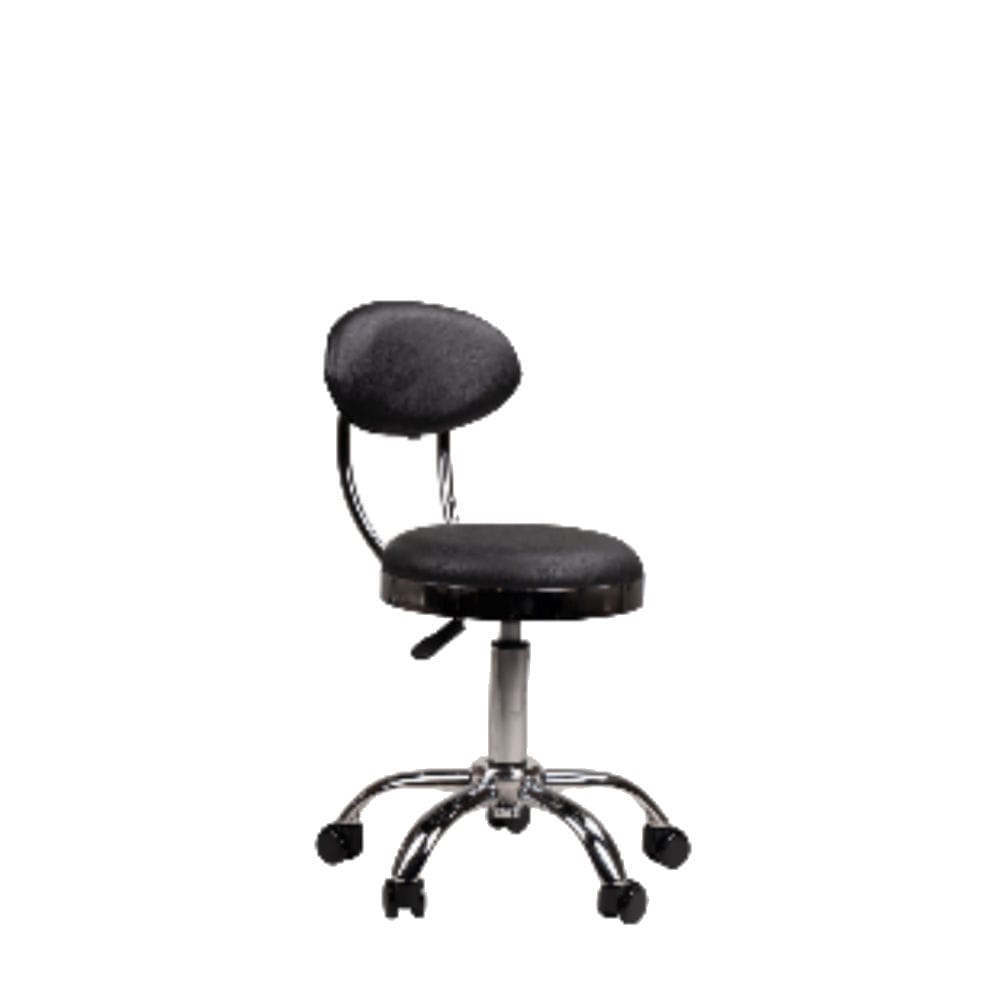 Skinmate Astra Support Stool. A new beauty salon stool designed for the therapist using the stool to sit with proper posture whilst offering maximum comfort. The ergonomic lumbar backrest provides lower back support to the therapist even while sitting forward to treat a client. Made from high quality faux leather upholstery it is soft, comfortable, and easy to clean. Easily adjust the height of the stool from 43cm to