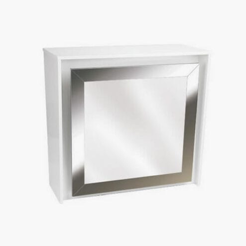 The Ayala Kirke is a simple yet stylish reception desk with a classic design, ideal for any hair salon, beauty spa or barbers shop. It features a mirrored front with a stainless steel frame and lighting as standard, adding a touch of elegance to the unit. There is plenty of shelf storage space and one pull out drawer to the rear. The wooden frame can be made in any colour from the Ayala laminate range (please note that the gloss laminate colours will incur a additional cost). Please use the drop down box to choose and see below for the colour chart.