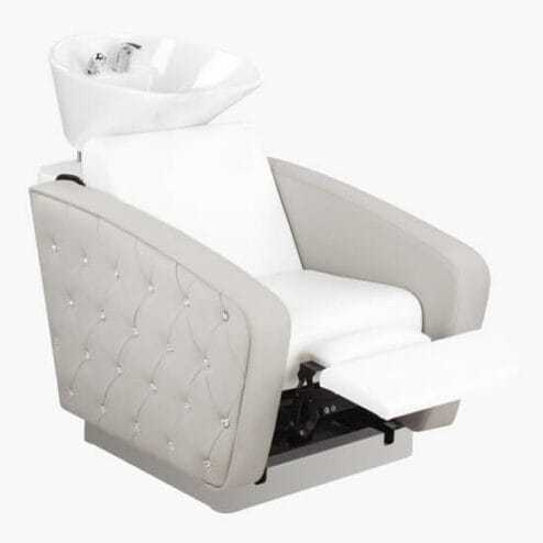 The unit comes as a basic version as standard but is also available with electric legrest and Shiatsu massage for an additional cost. The seat section and studded design sides can upholstered in any colour from the Ayala fabric range. Allowing you to tailor make your wash unit to best suit your salon.