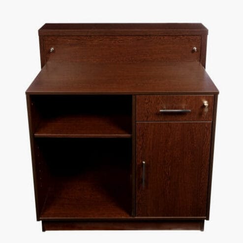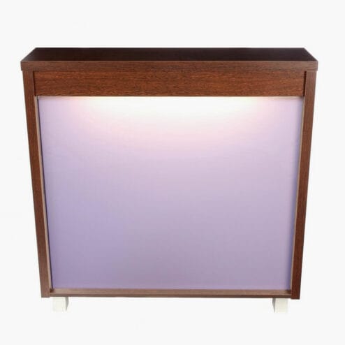 Crewe Orlando Barbados Moon Reception Desk is a stylish unit with a subdued light fitting that illuminates through a perspex front. The desk has fitted as standard; a locking drawer, a cupboard and open storage to the rear of the desk. It is available in a large selection of laminate colours. Please choose your laminate colour by selecting from the drop down box and see below for the colour chart.