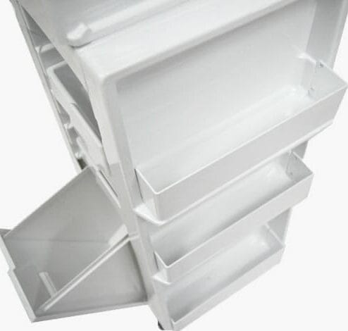 Direct Salon Furniture White Beauty Storage Trolley. An ideal storage solution for any beauty salon. It features 4 slide out drawers to place your products and tools in, 6 side trays, a flat top to place products for easy access, and finally a waste bin. With a large amount of storage space, this trolley is great at saving space. It comes on a castor wheel base making it easy to move around your salon. Available only in white. (accessories not included)