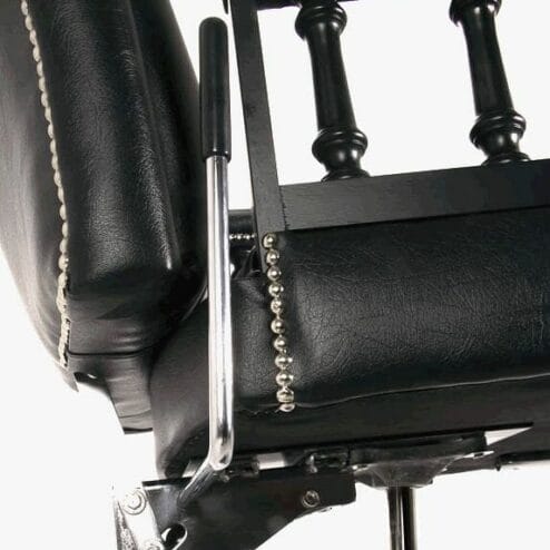 Chrome studs detail the arms and back of the Balmoral contrasting with the chrome base. The spindles separating the seat and sides can be specially finished to match any colour. The Balmoral is supplied on 5 star gas lift base and is available in any WBX upholstery colour, with or without an elegant button back design.