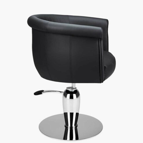 The Tulip chair comes complete with rear cut out for easy cleaning of cut hair and comes on a locking hydraulic pump, on a chrome 5 star base as standard, round and square locking hydraulic bases and the new Tulip shaped locking hydraulics are all available plus the gold round and black square base for a small additional cost.