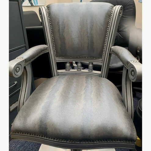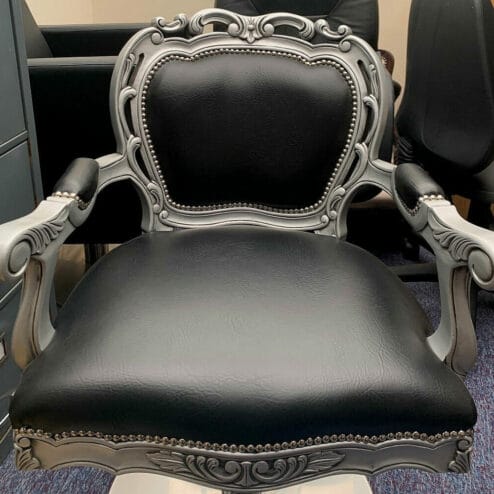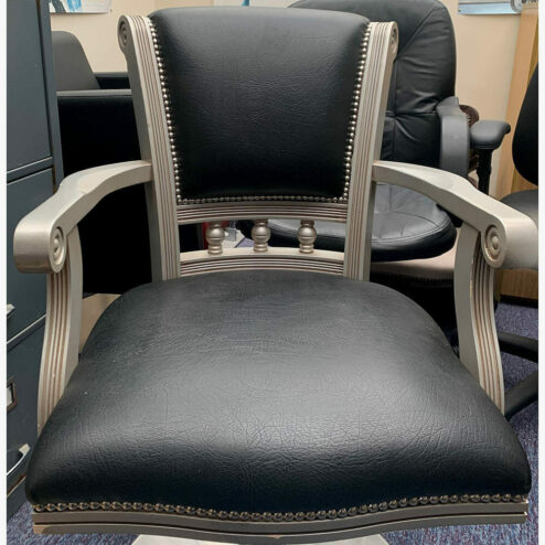 WBX Pompadour Silver Wood and Black Upholstery : Slight Travel Damage to Wood Upholstery Fine