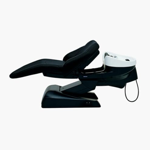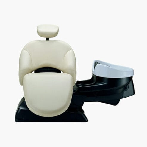 The Yume DX model features a rotating chair which moves 90 degrees clockwise or anti-clockwise (optional), allowing unobstructed rear access to the chair when the basin is not in use. It also includes an adjustable / removable headrest and manual legrest lever and fully flat recline position.