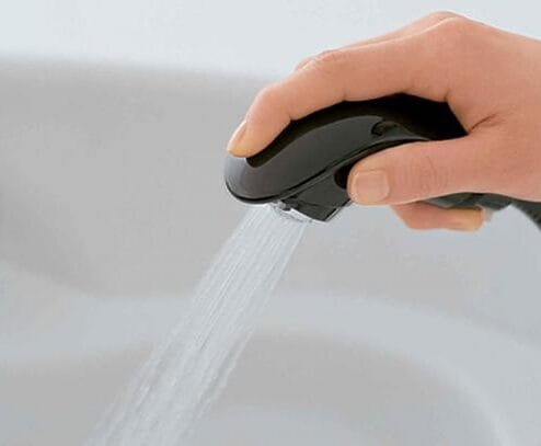 - Ceramic basin with chrome tap with thermostatic control, free swivelling showerhead & retracting cord, and a hair trap and drain cap.