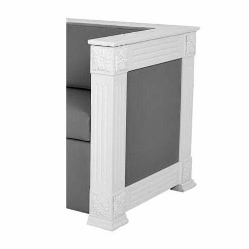 The Mila Angel Waiting Sofa is a stylish, comfortable salon waiting sofa. The seat and side panels can be upholstered in any fabric from the Mila Range (please note some colours may incur an extra charge). The elegantly designed wooden frame is available in either a White gloss or Black gloss finish. Please choose your fabric and laminate colour by selecting from the drop down boxes.
