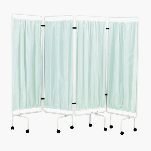 Multi purpose rolling base vanity screen, finished with a high gloss white EPC frame and wheels for easy mobility. The screen is also fitted with nylon clips to ensure stability and privacy. Available in blue, mint and white (please use the drop down box to choose your colour).