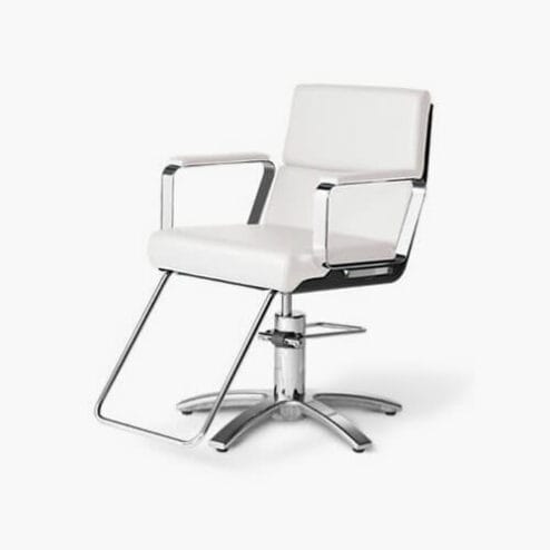 Modern chair with a simple yet elegant design. The Takara Belmont Adria II Styling Chair has a moulded fibreglass backrest shell which is available in Gloss Black or Gloss White. The chrome armrests feature upholstered padding for client comfort, the seat & backrest covers are removable and the footrest is included. It is available with a choice of four different hydraulic bases, all of which are height adjustable, rotate 360 degrees and lock into position. Please see below for images and use the drop down box to select your options.