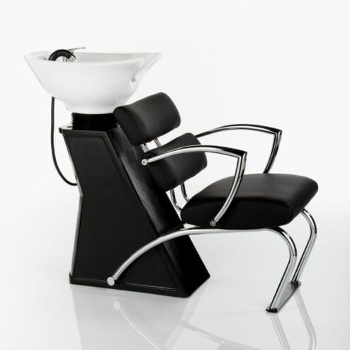 Economical wash unit with an elegant design. The Antigua Washpoint features a split back rest and deep cushioned seat for great comfort. Upholstered in a hard wearing black fabric. Ideal for any busy professional salon or barbers shop. The seat is mounted onto a chrome finished frame and sleek, black base cabinet. Giving a simple yet stylish feel. Comes complete with a deep ceramic white basin. Supplied on a tilting mechanism with mixer taps, handspray and full waste kit included. Ready for your plumber to install.