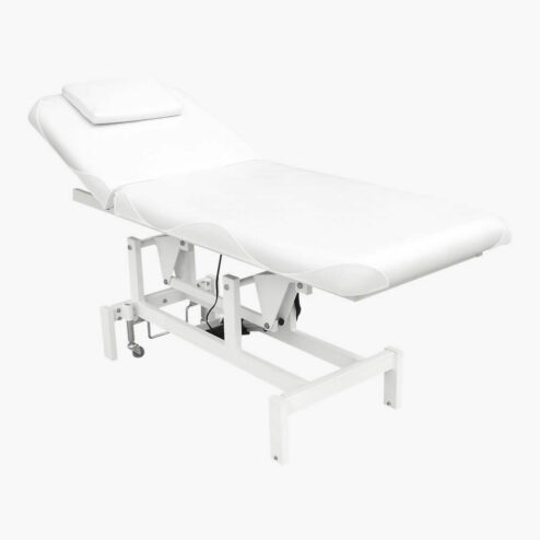 Electric beauty couch with up and down action and adjustable back rest with pillow and breather hole.