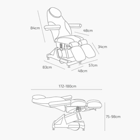 Direct Salon Furniture Podiatry 3 Motor Couch. A sturdy, practical couch with folding/removable armrests and removable face hole cushion. The 3 motors control the height, backrest and seat inclination while the legrests are adjustable by hydraulic gas lift independently. Made from an easy clean PU material.