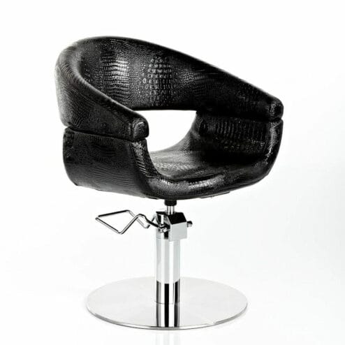 Contemporary designed professional styling chair. With a molded foam shape to prevent any trapped hair in the seat. And the wide frame gives excellent client comfort. The Niagra Snake Hydraulic Styling Chair is supplied with a chrome finished square base for great stability. Comes complete with a round locking hydraulic base. Which gives a simple height adjustment using the foot pedal. And stops any unwanted rotation during usage. The Niagra is fully upholstered in hard wearing black snake skin effect fabric which is easy to wipe clean. Ideal for any Hair Salon or Barber Shop environment.