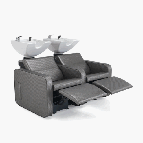 REM Dune 2 Position Washpoint Complete, extremely comfortable, sofa style wash unit with a modern design. The REM Dune 2 Position Washpoint features fully upholstered arms, seat and sides. Available in any colour fabric from the REM range. Please use the swatch guides to choose a colour. This wash unit comes complete with a large Kiko basin(as in single Dune image and top view of basin) with tilting mechanism and monobloc mixing valve kit.