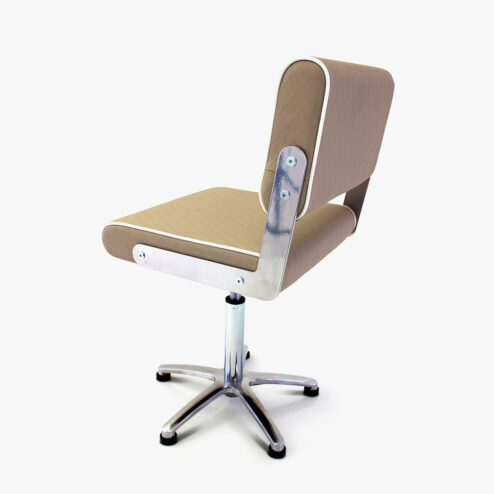 REM Futura Hairdressing Beauty Stool, new gas lift beauty or hairdressing stool from REM, square shaped seat and backrest with L shaped chromed side bars on a 5 star gas lift base and available in all one colour or a choice of colours from the REM 2020 fabric upholstery range.