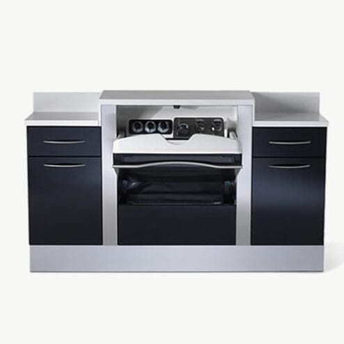 Unique fold-away basin system which is clean, neat, compact and ready for shampooing as and when required. The Takara Belmont Salon Console Type A has been created to allow for the optimum use of space. It converts from a functional cutting area to a fully fledged washpoint with ease. The lightweight basin folds away without a trace, and any remaining water drips are tidily collected in a concealed tray.