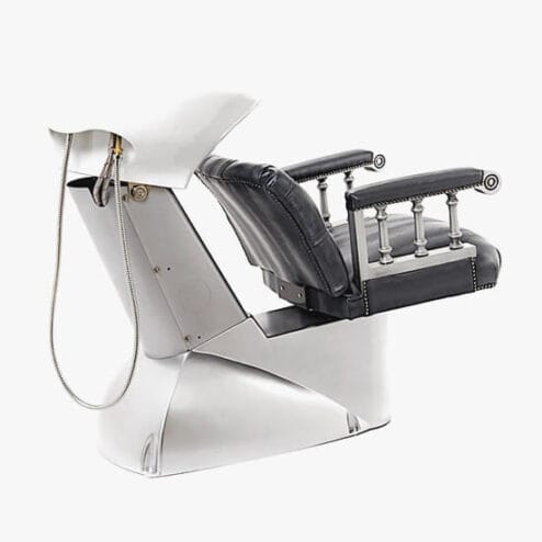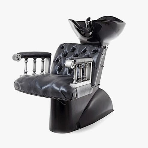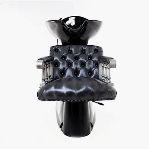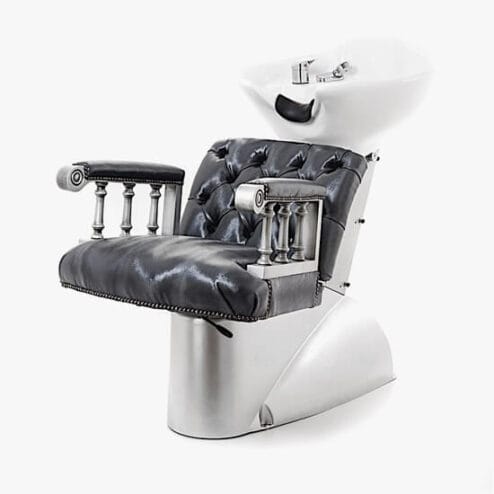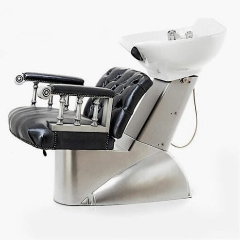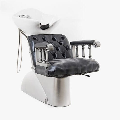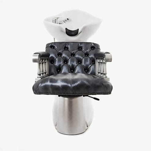 WBX 3000 Balmoral Washpoint Complete is a stylish wash unit with an unparalleled attention to detail and build quality. The Balmoral gives a traditional feel with a chic design. The chair is manufactured in black upholstery as standard with a stylish button back effect for a small additional cost (as shown in image). A huge range of colour combinations are available to be built to order. The solid Beech Frame lends itself perfectly to a vast range of colour finishes. From Antique Gold, Silver, Black and Distressed Cream. The Stud detailing is also available in chrome, antique bronze or gold.