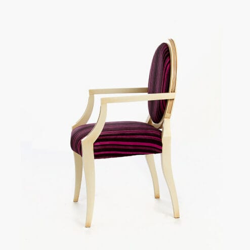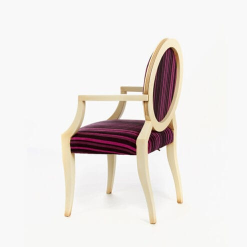 The WBX Barossa Reception Chair is a reproduction reception chair hand Made in England from solid wood. It is available in a large selection of coloured upholstery, different coloured studs and also a choice of wood colours.